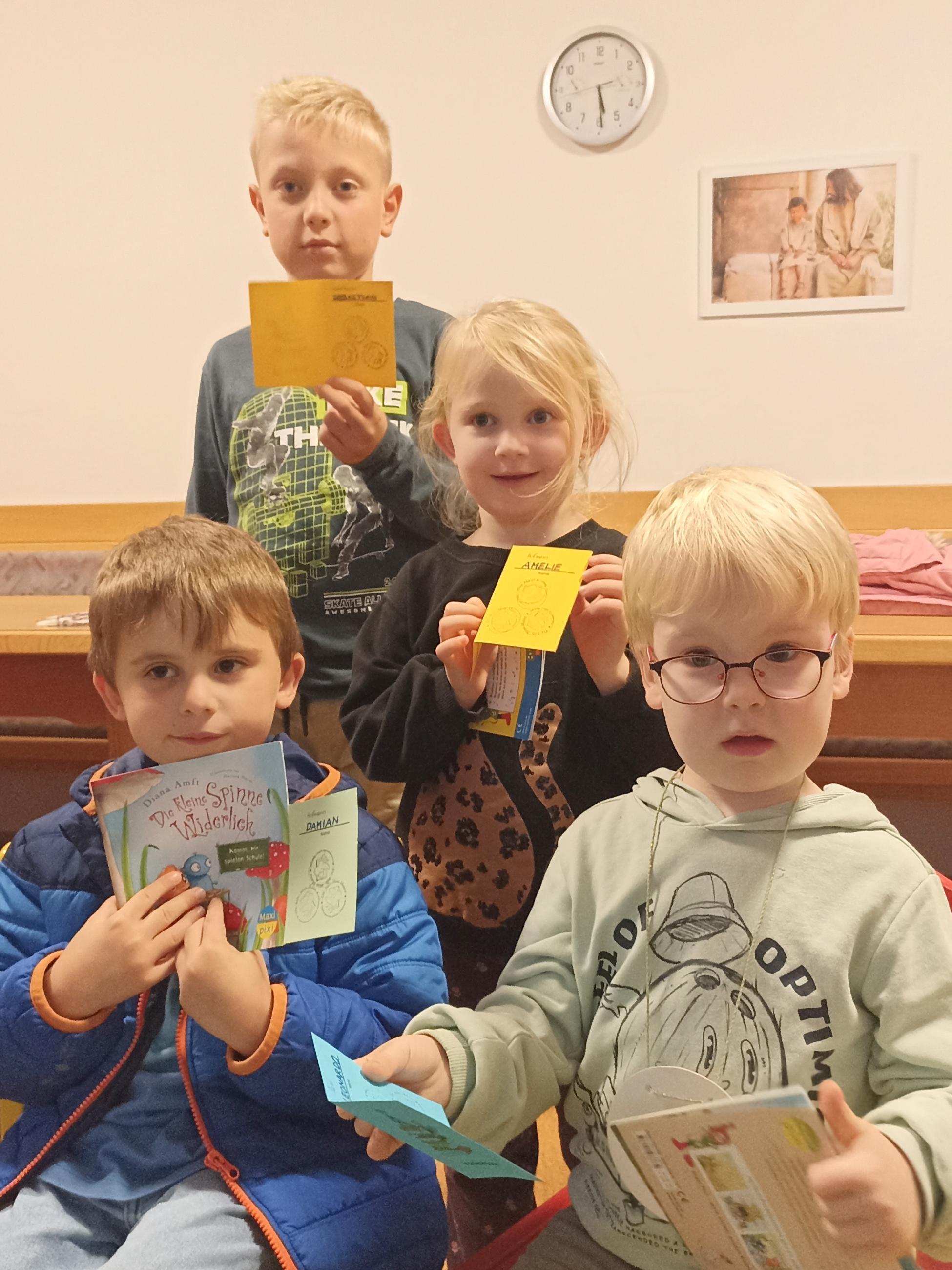 Vorlesen Vorlesen 5. März 2026 Bücherei Die Olchies und der kleine Drache Mücke - Marini Marienkäfer - Der Hund und der Hühnerdieb Bücherei Acht Kinder hören zu Bücherei Der Vorlesepass ist voll! Bücherei 05. März 2026 Pfarrbücherei DANKE für die 40. Vorlesestunde! Vorlesen 5. Februar 2026 Pfarrbücherei Bär mag es bunt!Der ParadiesvogelMäusemut Pfarrbücherei Pfarrbücherei Wir hören zu! Pfarrbücherei Der Lesepass ist voll! Pfarrbücherei 05. Februar 2026 Vorlesen 11. Dezember 2025 Der kleine Hase und das WeihnachtswunderDer kleine Igel und der turbulente WeihnachtstagLumina Pfarrbücherei Pfarrbücherei Drei Vorlesepässe sind voll! Pfarrbücherei 11. Dezember 2025 Vorlesen 13. November 2025 Mut tut gut - Arlo kann nicht schlafen Alle hören gespannt zu Der Vorlesepass ist voll Pfarrbücherei Vorlesen 9. Oktober 2025 Wozu ist ein Papa da?Der Sonnendieb Der Vorlesepass ist voll! Pfarrbücherei Vorlesen 5. Juni 2025 Das kleine Ich bin Ich - Schöne Ferien, Pauli5. Juni 2025 5. Juni 2025 5. Juni 2025 Der Vorlesepass ist voll!5. Juni 2025 Pfarrbücherei 5. Juni 2025 Vorlesen 8. Mai 2025 lumpi - Der kleine Esel Liebernicht - Ein Schaf im Glück8. Mai 2025 8. Mai 2025 8. Mai 2025 Der Vorlesepass ist voll!8. Mai 2025 Pfarrbücherei 8. Mai 2025 Vorlesen 3. April 2025 3. April 2025 3. April 2025 Rosi liest vor 3. April 2025 3. April 2025 Vorlesen 6. März 2025 06. März 2025 06. März 2025 06. März 2025 Geschenk für vollen Lesepass Pfarrbücherei 20 Kinder kamen zum Vorlesen Vorlesen 6. Februar 2025 06. Februar 2025 06. Februar 2025 Bücherei 06. Februar 2025 06. Februar 2025 06. Februar 2025 06. Februar 2025 Der Vorlesepass ist voll! 06. Februar 2025 06. Februar 2025 Bücherei 06. Februar 2025 06. Februar 2025 06. Februar 2025 06. Februar 2025 Der Vorlesepass ist voll! Downloads Vorlesen Plakat 2. Halbjahr 2024 (478.63 KB)